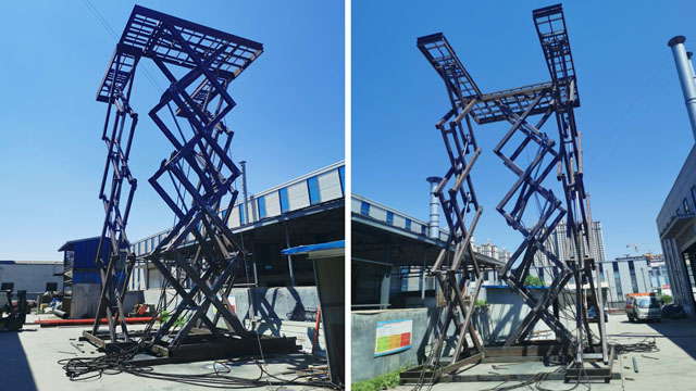 今年年初, 研究所來我司考察,經(jīng)過多家比對,確認了由我們公司生產(chǎn),期間我司工程設(shè)計師與采購方經(jīng)過多次的產(chǎn)品設(shè)計溝通,最終確認圖紙開始生產(chǎn)。與本月5月初交付使用。 定制特殊大型固定剪叉三臺同步升降平臺,------對于平臺的設(shè)計外型,技術(shù)上采用了剪叉式u字型的設(shè)計組合,此設(shè)計解決了客戶對于工作環(huán)境和平臺使用程度上的問題,平臺的凈升高是11米,載重量是2噸,三臺升降平臺同時保持升降平穩(wěn)的頻率。