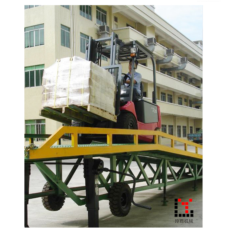 玲雨移動式液壓登車橋是與叉車配合使用的貨物裝卸輔助設備,可根據汽車車廂的高低調節(jié)高度,