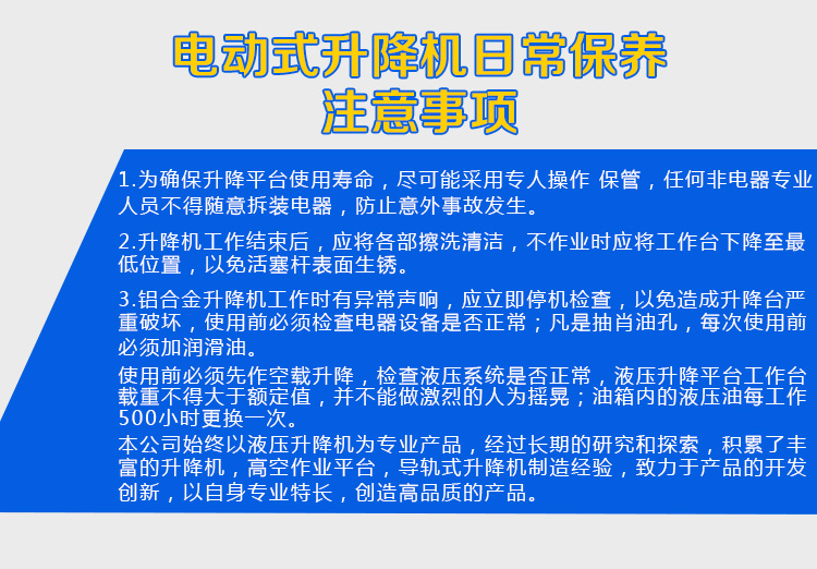 極大的提高了升降平臺的工作效率。臺面大,承載能力強,可多人同